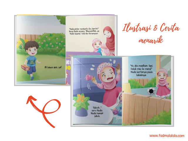 2. Cerita yang disampaikan menarik. Sesuai dengan keadaan nyata dan kehidupan anak sehari-harinya. Sehingga anak lebih mudah memahami dan mengamalkan akhlak apa yang disampaikan di dalam buku tersebut.